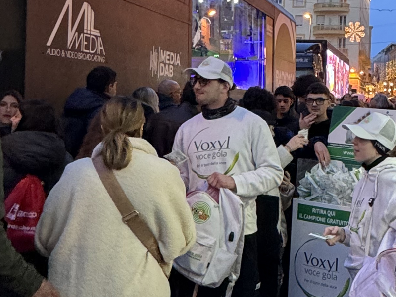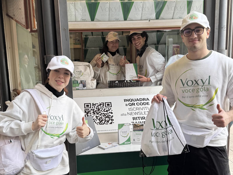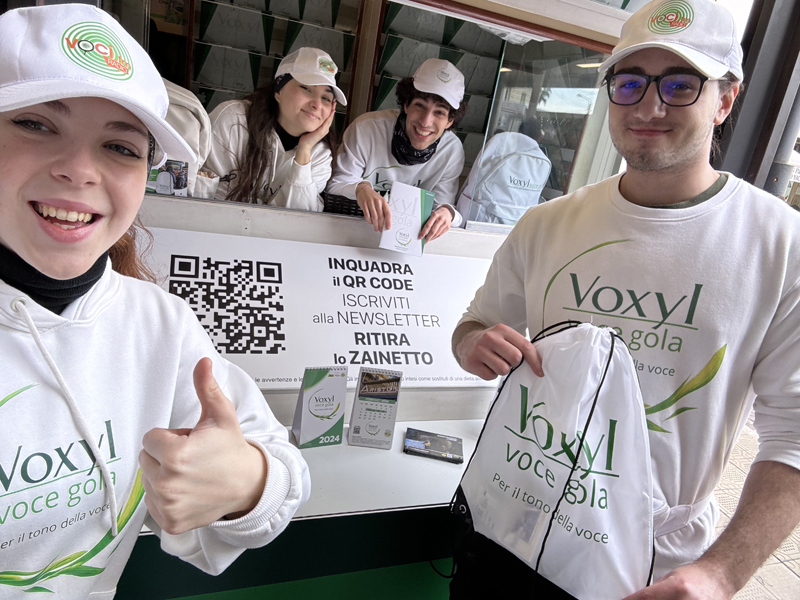Dal 6 al 10 febbraio, Voxyl è stato a Sanremo, quest’anno in più punti strategici: a pochi passi dall’Ariston, nell’ormai tradizionale ex-edicola sotto il loggiato di Piazza Colombo, e di fronte al Casinò, nel glass “Sanremo Sound Truck” in Corso Imperatrice. Non sono mancati gadget e campioni di “VOXYL VOCE GOLA”, integratore alimentare a base di erisimo, ingrediente di origine naturale per il tono della voce.
