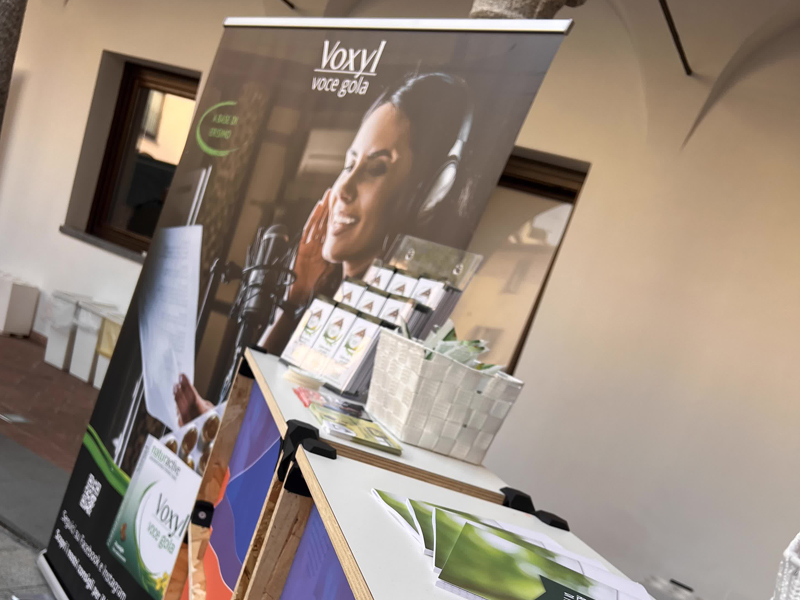 Voxyl Voce Gola, integratore alimentare a base di erisimo, ingrediente di origine naturale per il tono della voce è stato presente con il suo grande stand dal quale abbiamo distribuito campioni gratuiti e gadget.