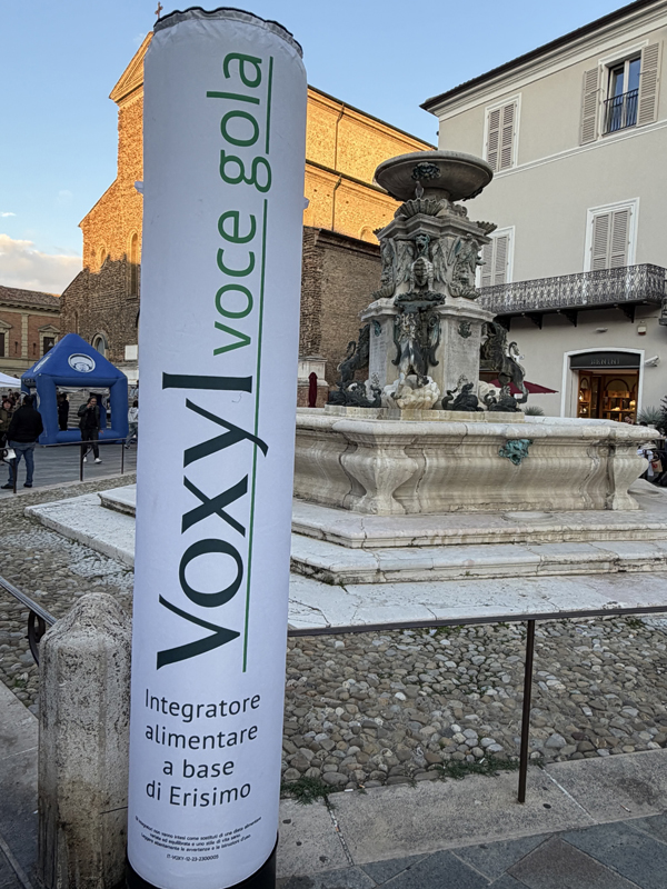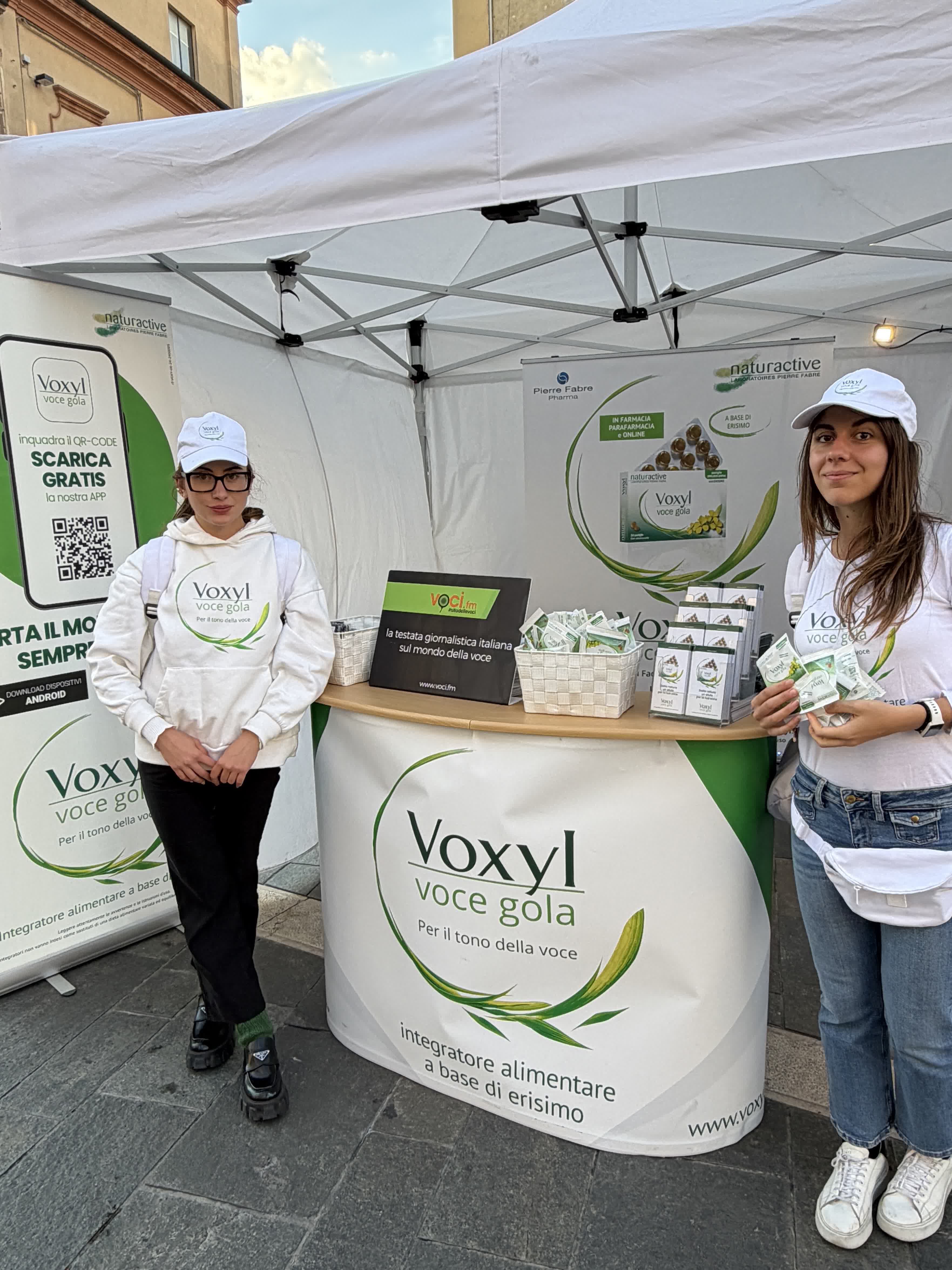 Dal nostro stand in Piazza della Libertà e con le promoter itineranti per il centro storico animato dall’evento, abbiamo distribuito migliaia di campioni omaggio e gadget di Voxyl Voce Gola, integratore alimentare a base di erisimo, ingrediente di origine naturale per il tono della voce.
